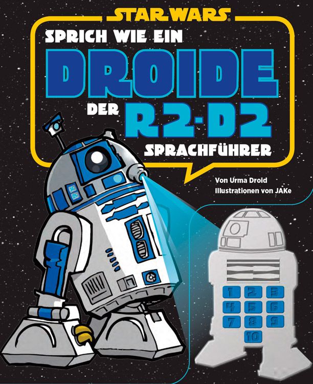 - Sprich wie ein Droide – Der R2-D2-Sprachführer erscheint unter der ISBN 978-3833226847 und kann hier auf Amazon.de bestellt werden. Verlagsinfo: Wer kennt das nicht? Man spielt Holo-Schach mit einem Wookiee, und plötzlich laufen die Dinge aus dem Ruder. Irgendwie hat man ihn beleidigt, aber man weiß nicht womit. Wie lässt sich diese Situation entschärfen? Und wichtiger noch, wie kann man dafür sorgen, dass sich so etwas nicht wiederholt? Dieser hilfreiche Sprachführer lehrt den galaktischen Bürger Kernsätze der Wookiee-Sprache, um lebensgefährliche Begegnungen mit notorisch reizbaren Wookiees zu vermeiden und gleichzeitig den Weg zu partnerschaftlichen Beziehungen und dauerhaften Freundschaften zu ebnen. Mit praktischem Sprachmodul mit Aufnahmen von Chewbacca höchstpersönlich!