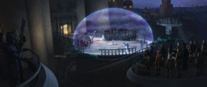 Beide Seiten, die Separatisten und die Jedi, haben ihre Pläne vollendet und bringen sich nun auf Naboo in Position, wo Kanzler Palpatine das Festival des Lichts eröffnen wird. Dabei sorgen die Königliche Wache von Naboo und natürlich die Senatswachen des Kanzlers gemeinsam mit den Jedi für Schutz. Die Sicherheitsmaßnahmen sind jetzt nicht großartig überraschend. Eingänge, Zugänge und derlei werden von den Wachen patrouilliert und die Jedi bleiben dicht beim Kanzler sowie den Senatoren. Dafür, dass hier extra noch einmal mehrere Ratsmitglieder und Anakin mit Ahsoka zusammenkommen, ist das schon recht einfach gestrickt. Zeitgleich erläutert Cad Bane seinen Plan, hält dabei jedoch einige Details zurück, sodass keiner und vor allem nicht Kenobi den gesamten Plan kennt. Der soll außerdem der Schütze für das Unternehmen sein und erhält neben drei anderen Kopfgeldjägern eine holografische Verkleidung als Senatswache. Count Dooku, der sie nach Naboo begleitet hat, traut Hardeen jedoch ebenso wenig wie Cad Bane, wobei der Sith natürlich den Vorteil hat, dass er vermutlich die Verbindung zur Macht in Kenobi spürt.