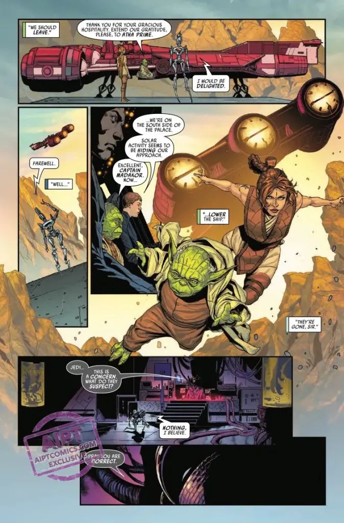 Als ich in der letzten Ausgabe bereits die Ankündigung für Ausgabe #2 und damit den Namen Atha Prime las war ich der Idee schon ein wenig misstrauisch gegenüber. Atha Prime ist eine mehr als nischenhafte Figur aus dem Legends-Bereich, die so angelegt wurde, dass sie in gefühlt jedem Gen-Experiment aus der Prequel-Zeit mal ihre Griffel hatte. Ich war dennoch gespannt darauf, wie diese Figur nun im Kanon dargestellt werden würde. Zunächst zur Figur an sich: Wir erfahren in dem Comic tatsächlich nur recht wenig über Atha Prime und das meiste ist stereotypisches Bösewichtsmaterial. Ein bösartiger Gentechniker, der Monster geschaffen hat. Ach und anscheinend ist er Yoda bekannt, da er ihn zumindest beim vollen Namen nennt. Das wars aber auch schon an Informationsfülle. Ich weiß nicht ob dieser Handlungsstrang in einer zukünftigen Ausgabe nochmal aufgegriffen wird, aber in der jetzigen Form wirkt es wie eine fast schon generische Fillergeschichte, die ich weder erwartet habe noch wirklich interessant fand. Denn eigentlich wollte ich nach Ausgabe #1 ja wissen, was es mit dem mysteriösen Attentäter auf sich hat. Diese Atha Prime Geschichte hätte gut und gerne der Auftakt oder Teil einer eigenen Mini-Reihe sein können, aber hier war sie mir zu unpassend platziert und zu einfach gestrickt.