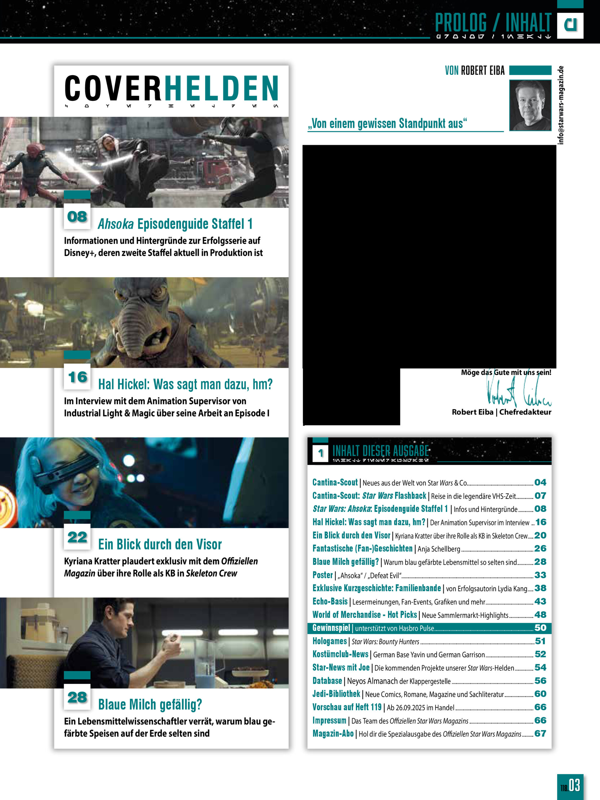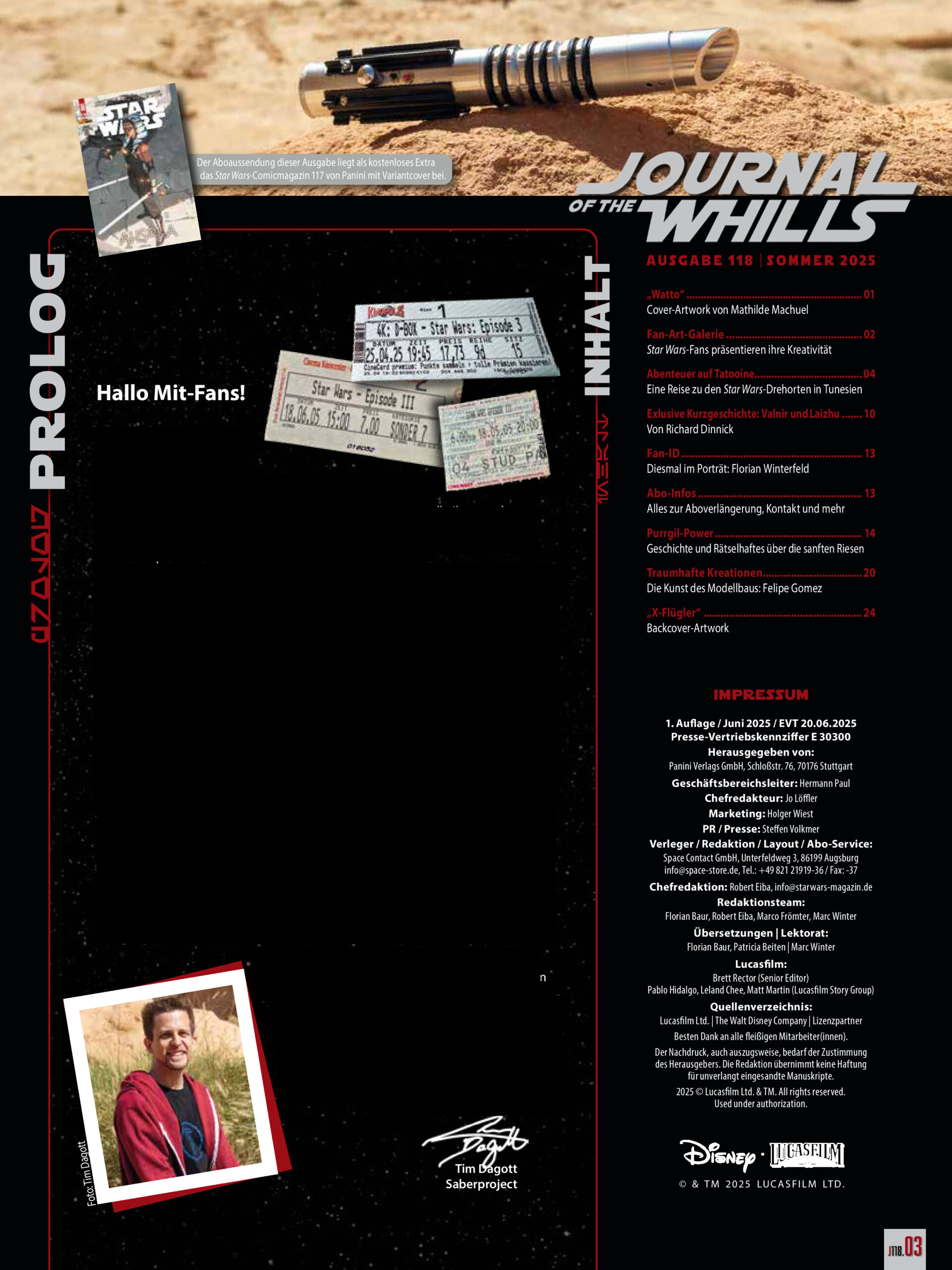 Zudem enthüllt die Vorschauseite des JOTW #118, dass sich für das Vorwort diesmal Tim Dagott von unseren Freunden von Saberproject gefunden hat. Mit Blick auf das dortige Inhaltsverzeichnis dürfen sich Abonnent*innen zudem unter anderem über einen Artikel der Star Wars-Drehorte in Tunesien sowie eine weitere exklusive Kurzgeschichte von Richard Dinnick freuen. Außerdem munkelt man, dass ein gewisser Jedi-Bibliothekar diesmal mit einem kleinen Beitrag im Bereich der Fan-ID vertreten sein wird.