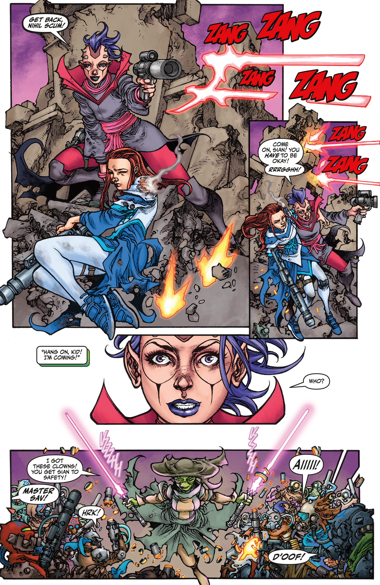 Nachdem Farzala den Warden mitsamt der Star Hopper abgeschossen und getötet hat, geben (leider!) nicht direkt alle Nihil auf, sondern es muss sowohl am Boden als auch in der Luft noch eine weitere Runde sinnlos rumgekämpft werden. Emotionales Zentrum der Handlung ist dabei Sian Holt, die während der Straßenkämpfe angeschossen wird und sich durch diese Nahtoderfahrung bewusste wird, wie sehr sie Emerick liebt (welcher gerade auf seiner eigenen Mission zusammen mit Kantam und Navaj Tarkin unterwegs ist, die ihr in Trials of the Jedi lesen könnt). Am Ende ziehen sich die übriggebliebenen Nihil zurück, alle liegen sich glücklich in den Armen, Sian und Emerick küssen sich und es wird gefeiert, dass Eriadu frei ist.
